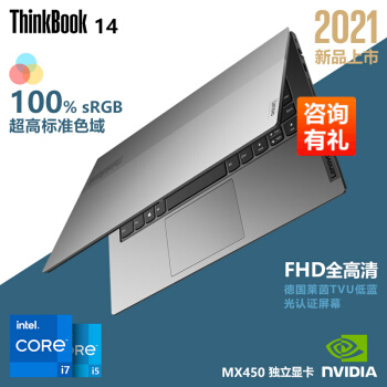 • 联想ThinkBook 14 2021款 14英寸轻薄笔记本电脑 【08CD】 11代酷睿i7-1165G7 独显 16G 512G 100%sRGB 高色域 标配
