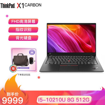 • 联想ThinkPad X1 Carbon 2020英特尔酷睿i5 14英寸轻薄笔记本电脑 i5-10210U 8GB 512G(36CD) FHD 背光键盘 Win10 office